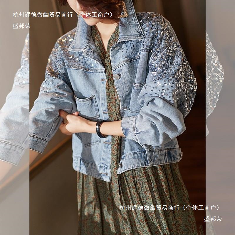 ファッショナブルなスパンコール付きデニムジャケットレディース新しいヨーロッパスタイルショート秋服小柄な人向けルーズでスリムなLianyanヨーロッパとアメリカ