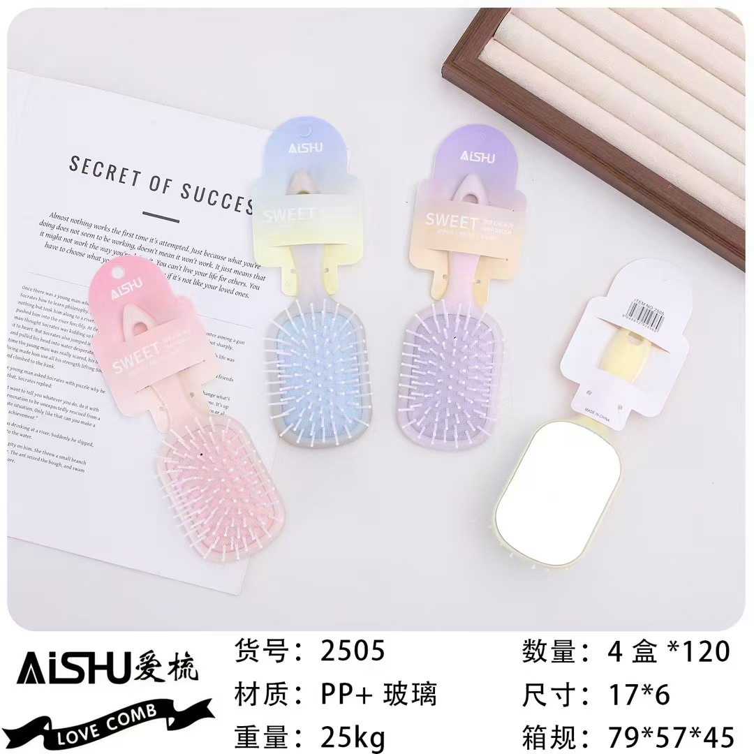 レインボー 2 ドルショップ カラー独立ロールコーム ミラー付き カーリーヘアコーム ブロードライヘア 前髪 ペアヘッド インナーバックル