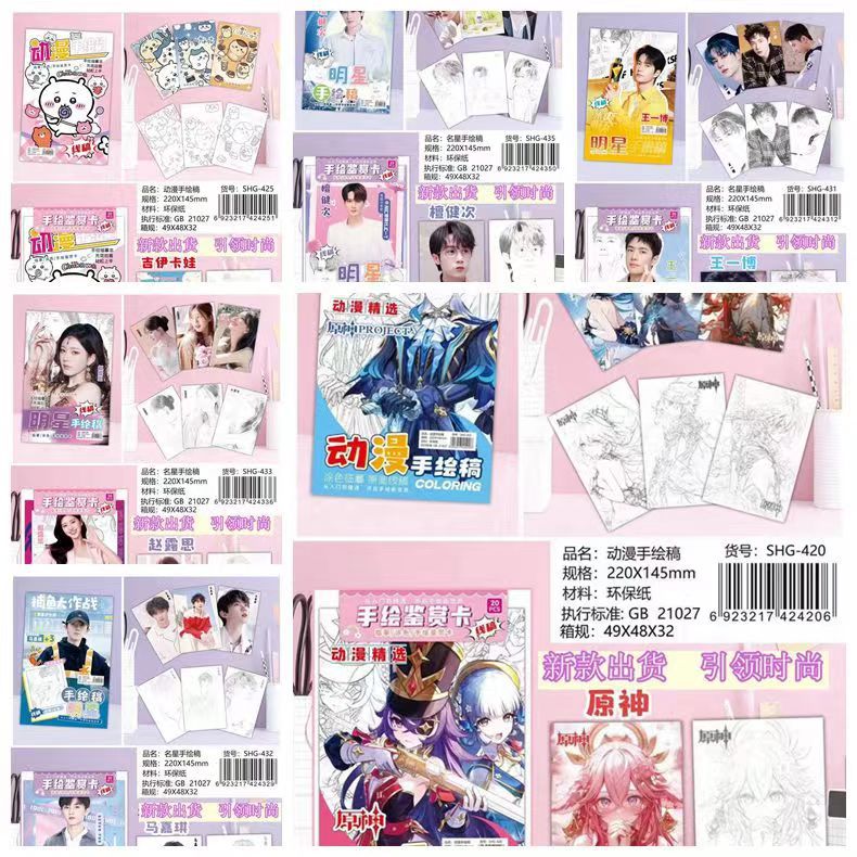 漫画のアニメのスターの手描きの線の原稿の創意の絵画は本の付箋の初心者の水彩画の塗り絵の紙を塗ります。