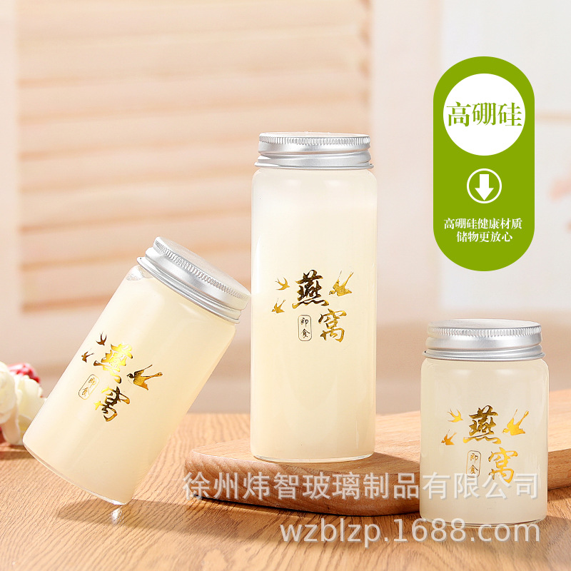 卸売り高ホウ素シリコン蓋付きツバメの瓶ガラス密封分注瓶銀耳湯分注瓶インスタントツバメの巣包装瓶