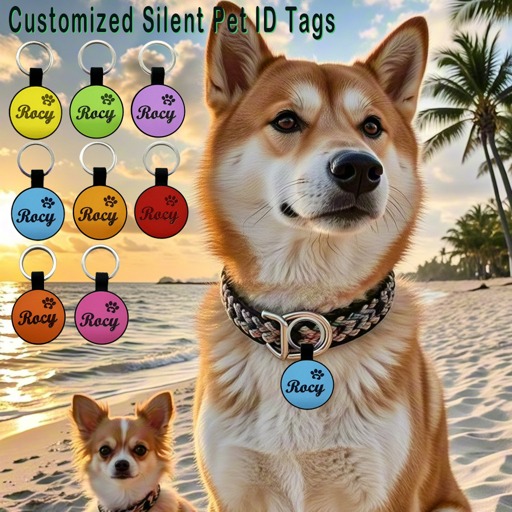 国境を越えたペット用丸型シリコン製ドッグタグ、合金製ネームタグペンダント、静音刻印ペット用犬猫ネームプレート