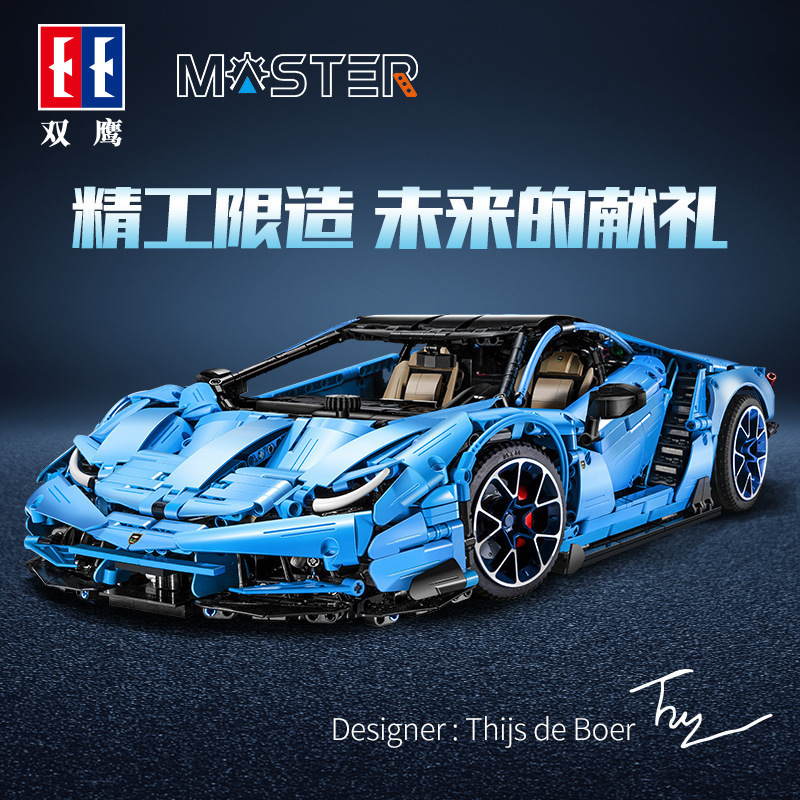 双鷹の新型c61041高難度の青いスポーツカーのレースの大きい牛の模型の子供は積み木のおもちゃをつづり合わせます。