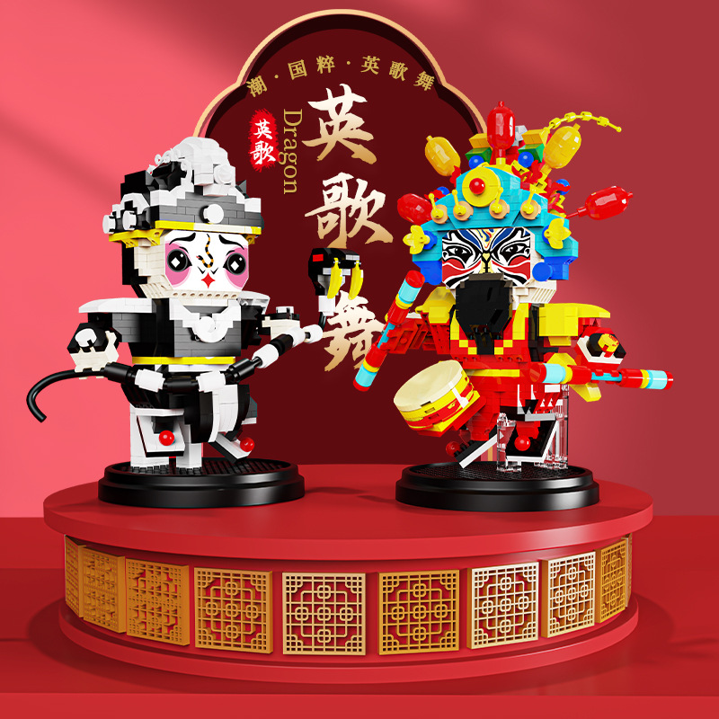 予高国潮潮汕英歌舞人物積み木フィギュア玩具中華戦舞潮文化積み木置物