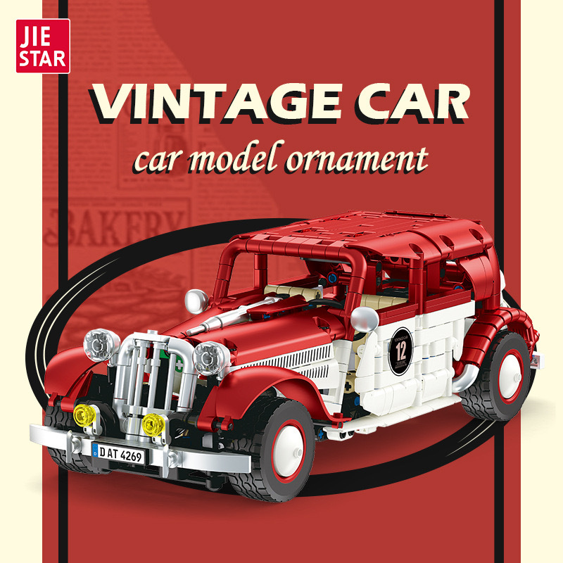 傑星クロスボーダーJJ9106東風雪龍レトロリモコンおじいさん車相乗り小粒積み木玩具模型