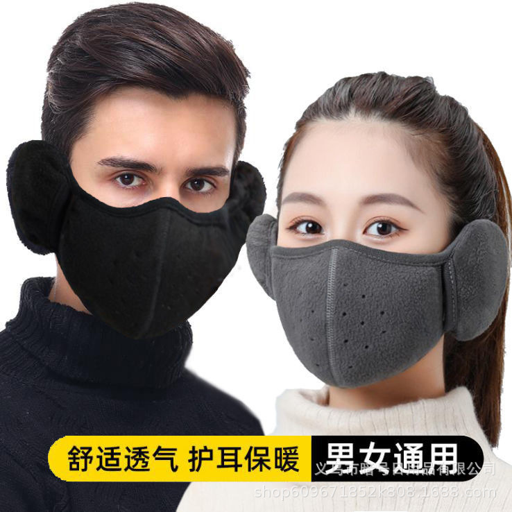冬マスク耳一体通気保温マスク男性防寒マスク耳カバー二合一秋耳保護冬