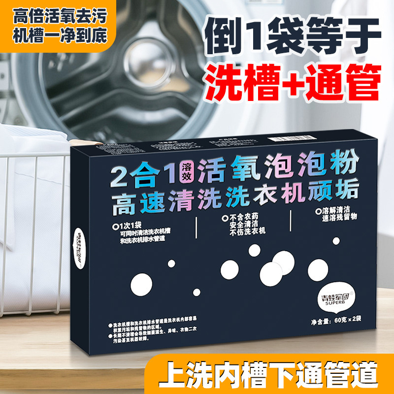 パイプ詰まり解消 2-in-1 活性酸素バブルパウダー 洗濯機タンク洗浄剤 パイプ洗浄 強力除染と洗浄