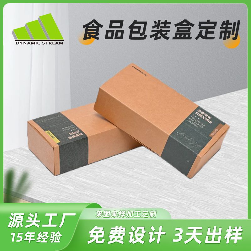 長方形牛革紙サンドイッチボックス、シンプルなフリップカバー付き、厚手の食品用紙箱、蓋付きスナック包装、メーカー卸売