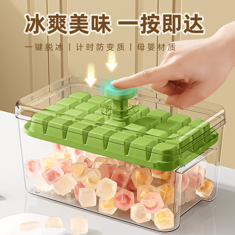 ワンクリックで取り外し可能な製氷皿氷収納ボックス二層プレス製氷ボックス食品グレードのアイスキューブ型家庭用密封収納ボックス