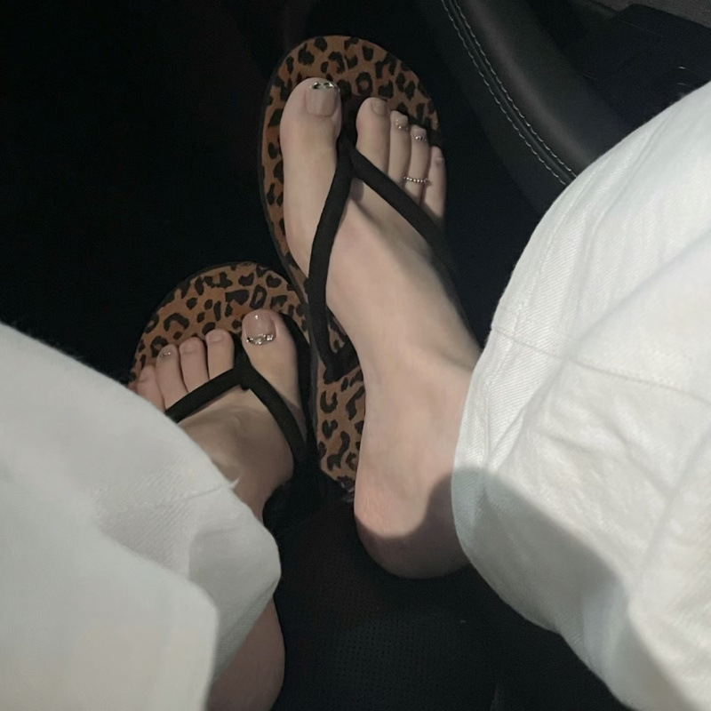 女性が夏に外で履くためのヒョウ柄ビーチサンダル、海辺やビーチのソフトソールの屋内滑り止めビーチサンダル
