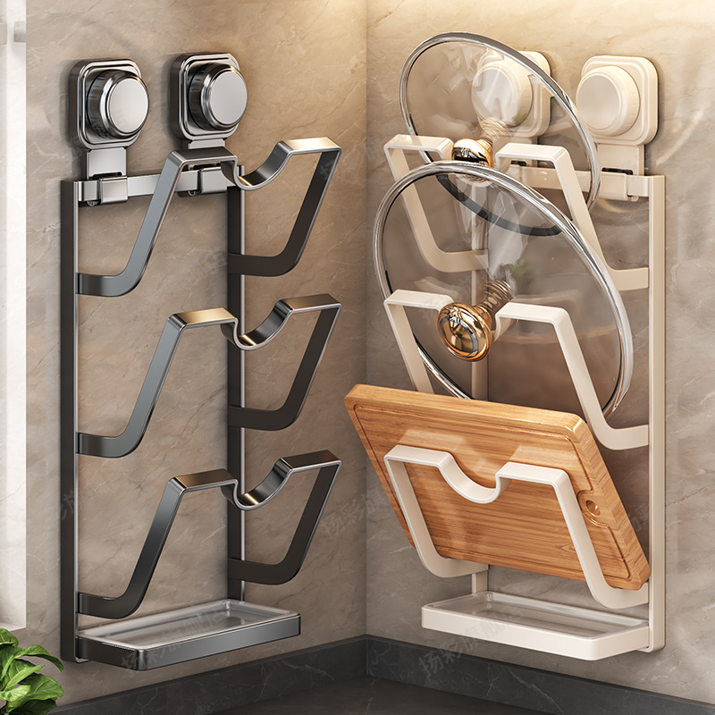 工場直販パンチフリー壁掛けキッチン収納ラック多機能まな板多層収納ラック吸盤鍋蓋
