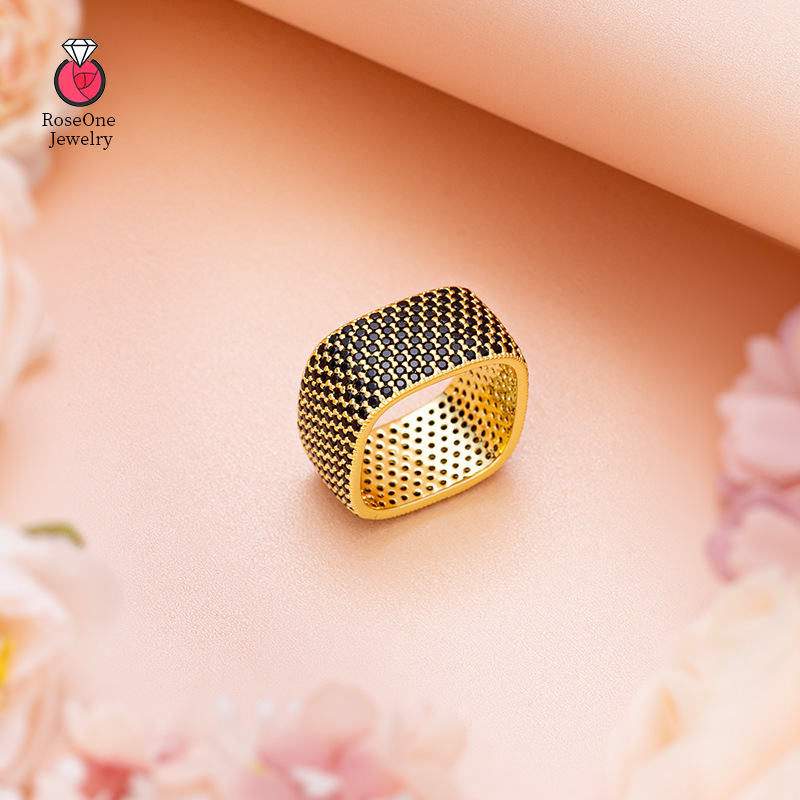 生放送で起爆した純銀の透かし彫りレースの指輪の新型の精密な黒金はイタリアの工芸の赤い本を設計して熱売します。