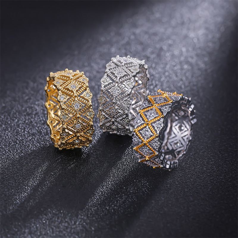 セイコーフルダイヤモンドレースリング、新しいスタイル、中空スタイル、スターリングシルバーメッキ、18K、在庫あり、卸売、男性と女性向けの人気モデル