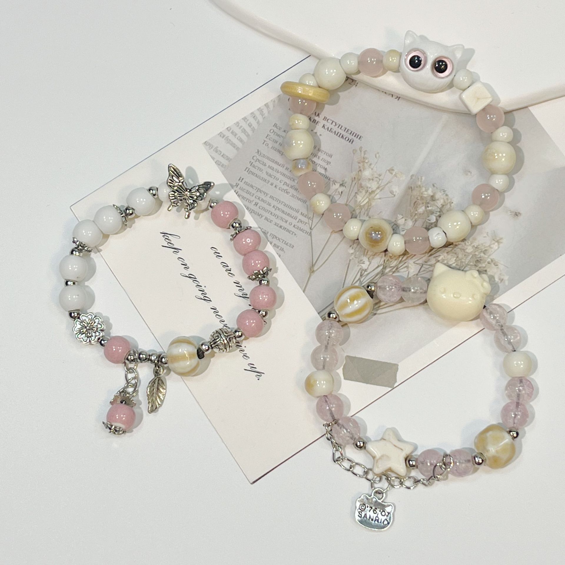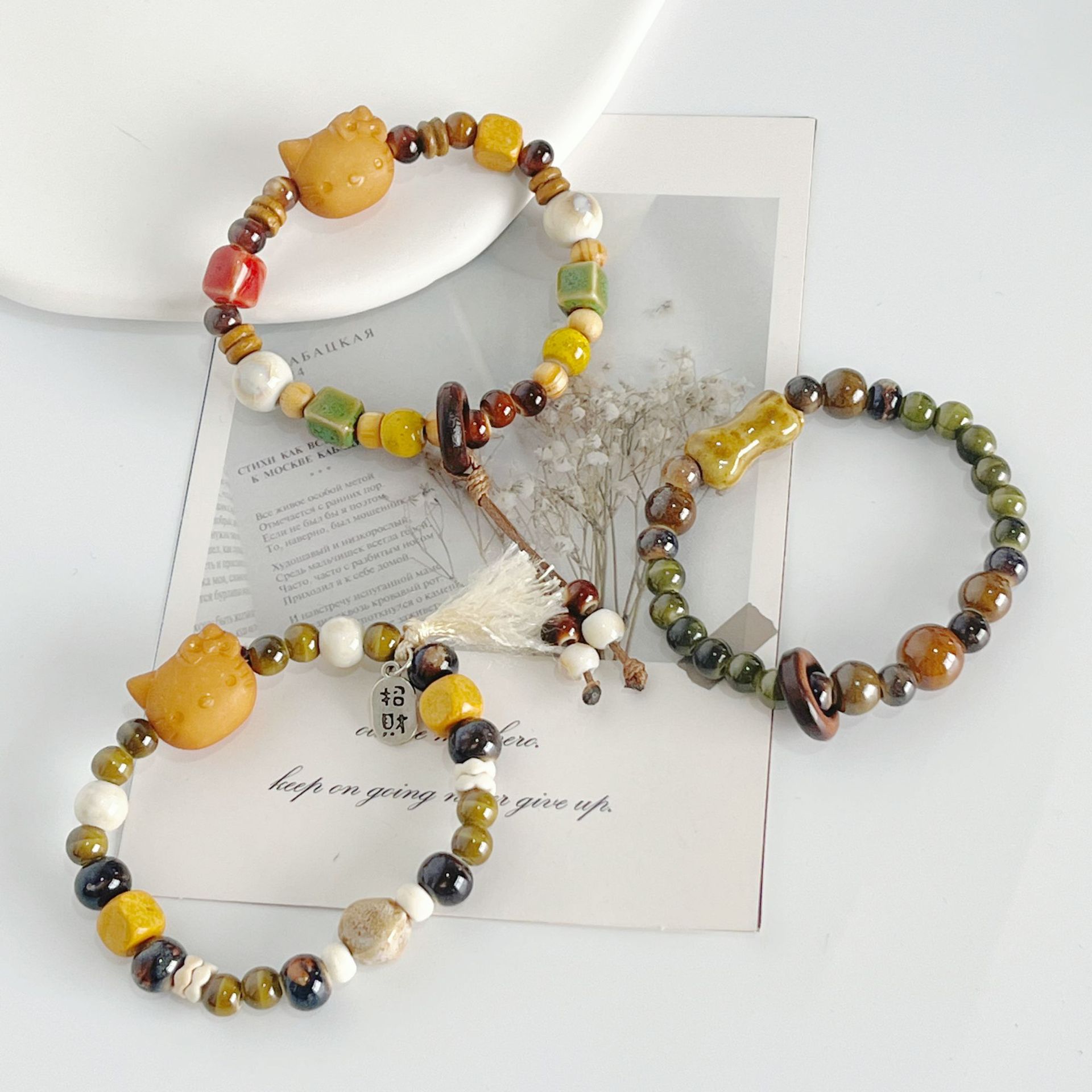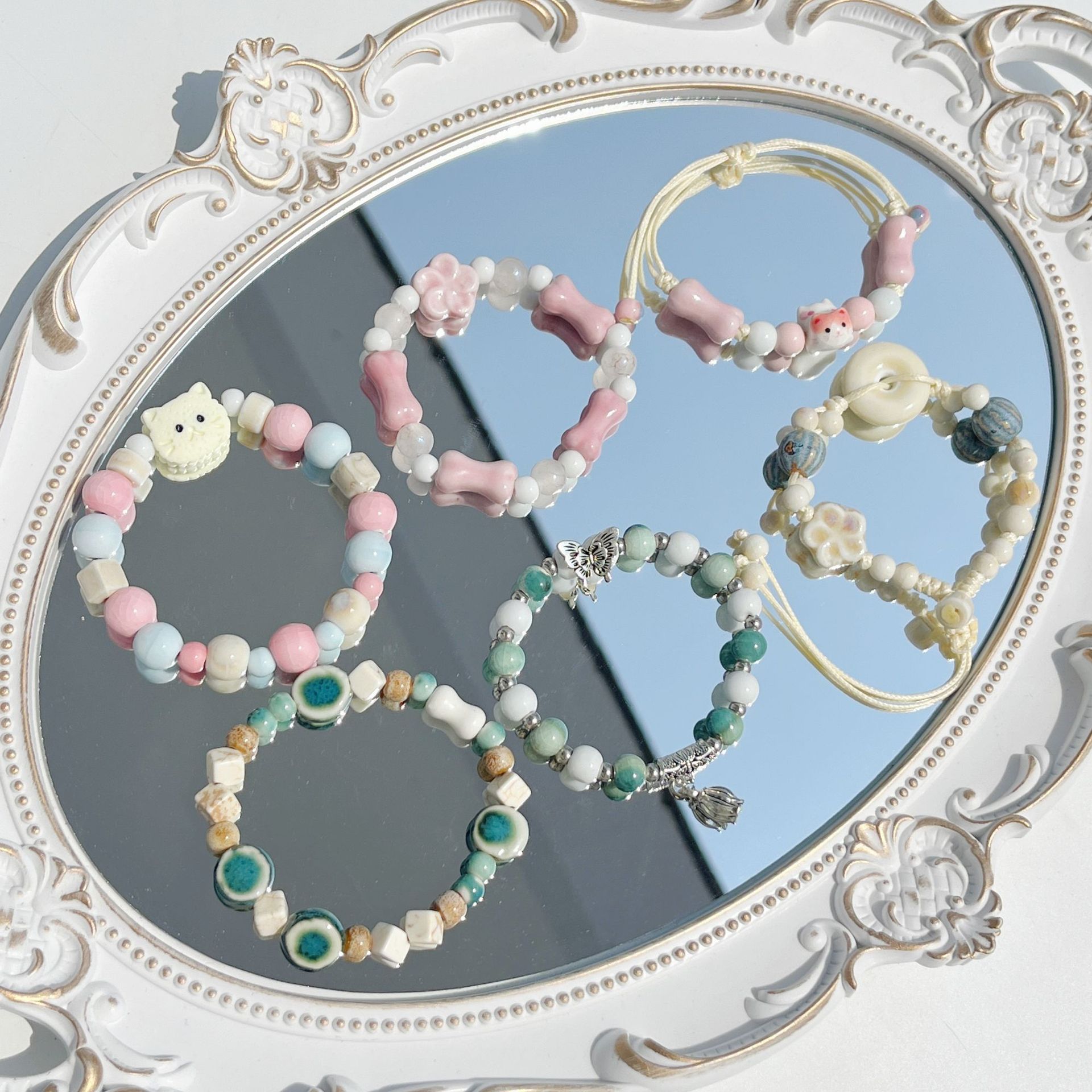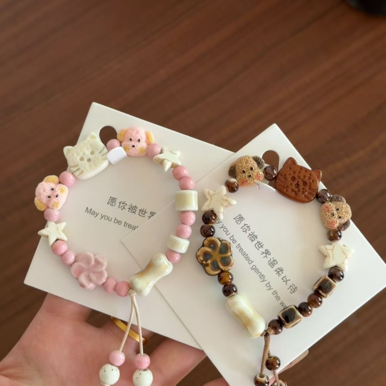 景徳鎮陶器の猫と犬の漫画風アクセサリー、陶器のブレスレット、学生へのプレゼント、屋台の飾り