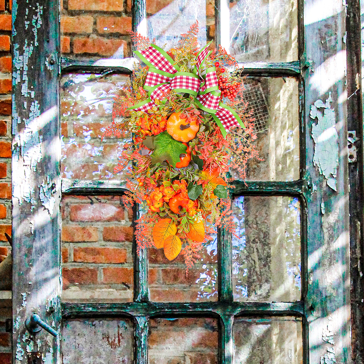 結晶辰新作クリスマス花輪秋色感謝祭花輪かぼちゃ蝶結びシミュレーション花輪門掛装飾卸売り
