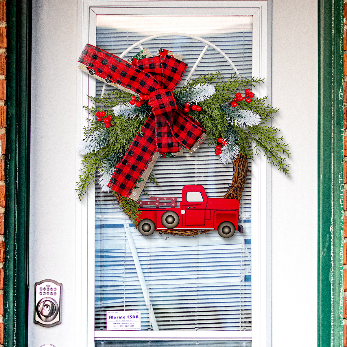 晶辰クロスボーダー新品レッドトラッククリスマス門掛農舎レッドトラック花輪クリスマス花輪飾り