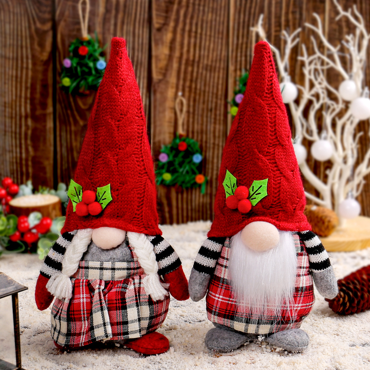 晶辰のかわいいお下げの顔のない子供の格子縞の帽子を持つ森の老人の子供の家のぬいぐるみのテーブルの装飾品の卸売り