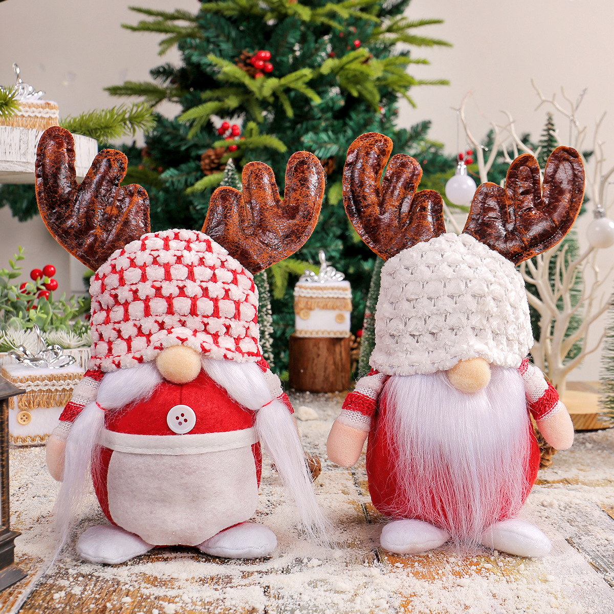 晶辰クロスボーダークリスマス無顔人形置物鹿角老人公仔白ひげ小人立ち人形ショーウインドー装飾