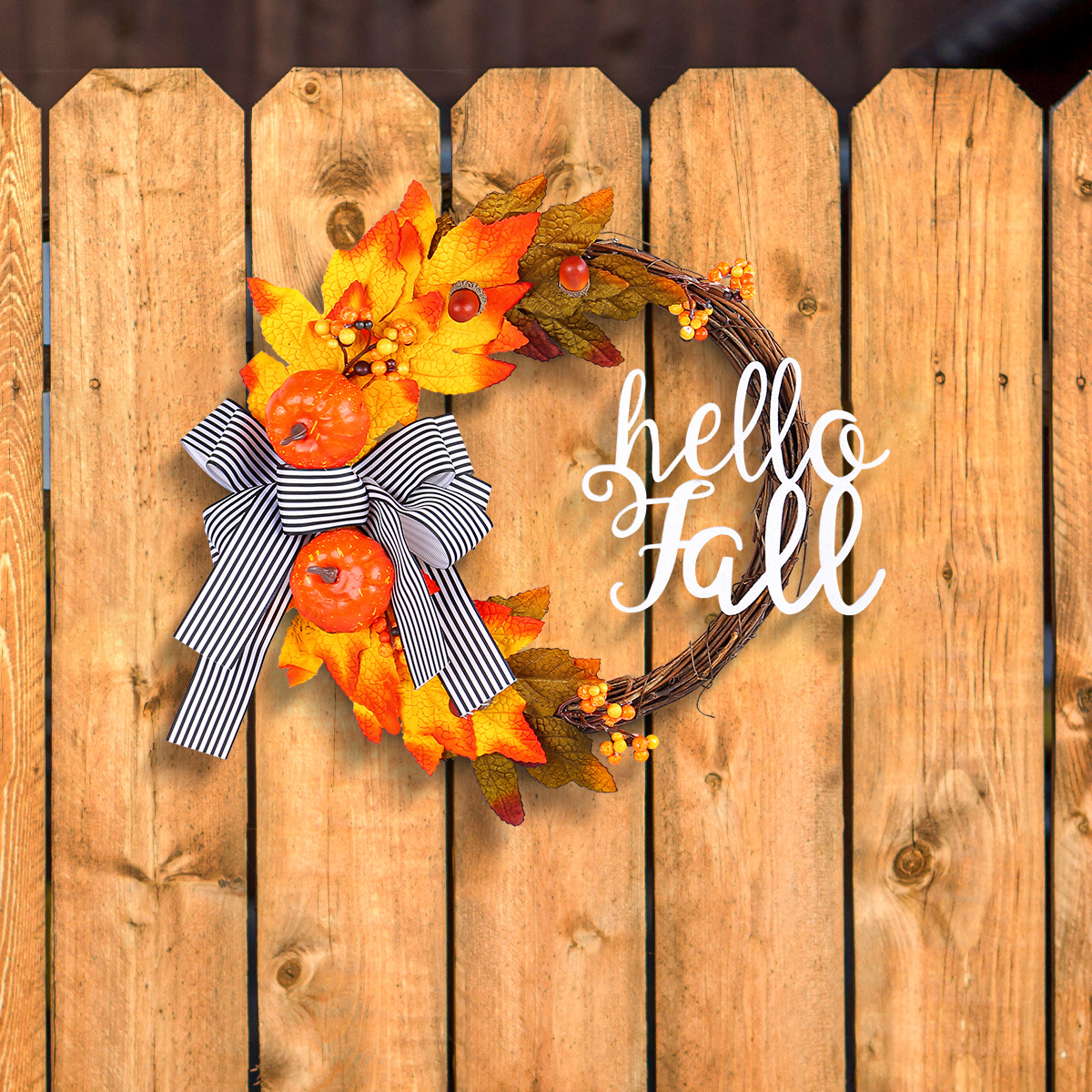 結晶辰豊収節花輪感謝祭シミュレーション紅葉カボチャ秋字牌枯枝藤輪門掛装飾品