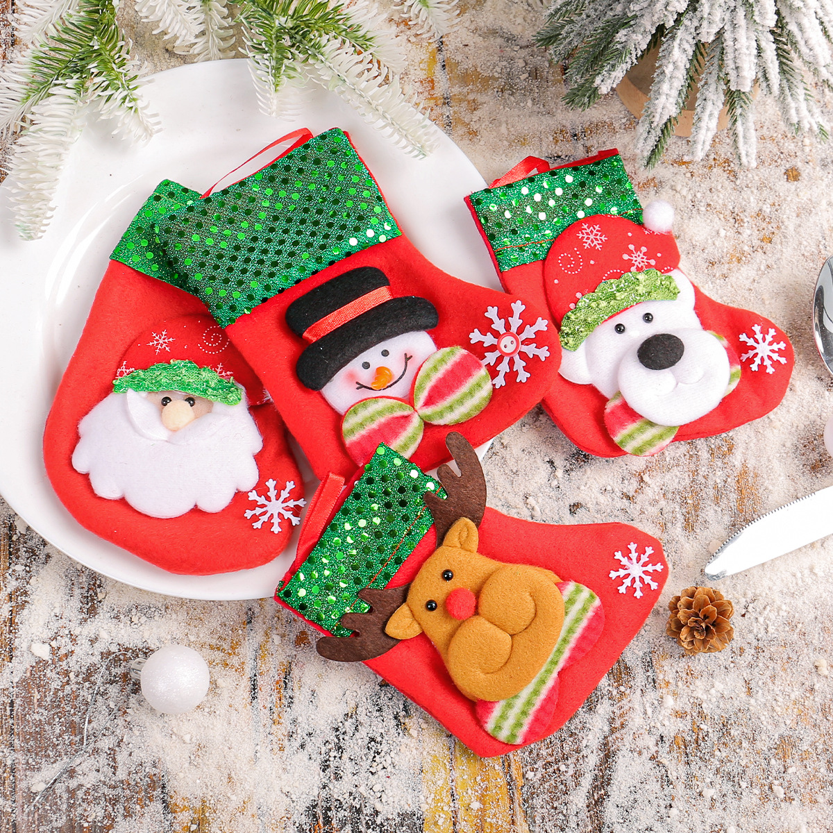 結晶辰クロスボーダーぬいぐるみクリスマス靴下老人雪だるまヘラジカキャンディー袋クリスマスツリープレゼント靴下