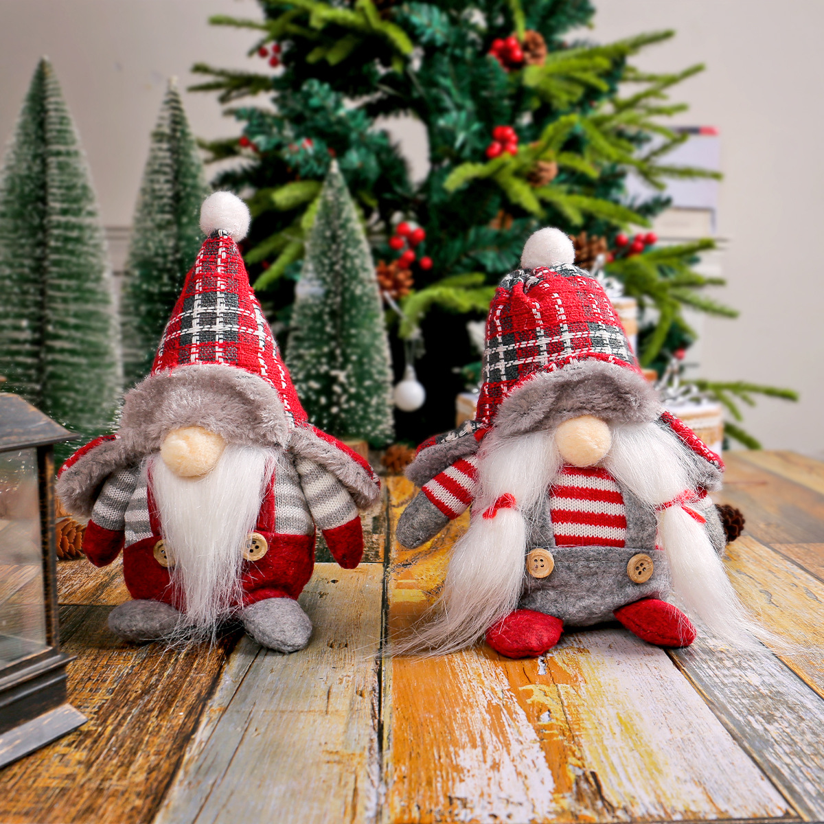 晶辰クロスボーダー無顔人形森林老人置物ファッション格子帽子老人公仔シーン装飾品
