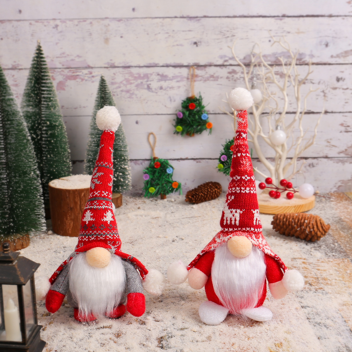 晶辰は新しい古い顧客が国境を越えたクリスマスに顔のない老人五角星ニット帽の精霊公仔の置物をフィードバックした