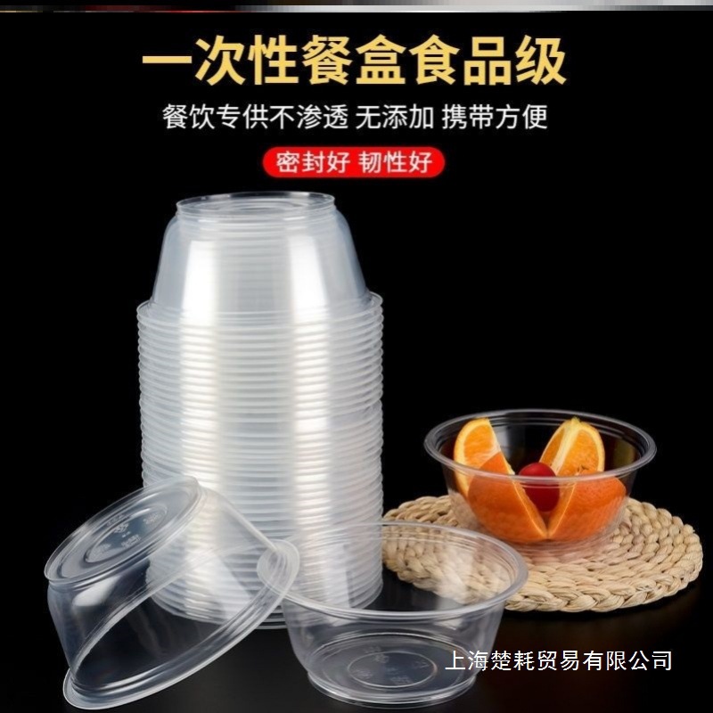 蓋なしの使い捨てプラスチックボウル、家庭用および商業用の使い捨て透明丸ボウル、厚みのあるディナーボックス、梱包箱