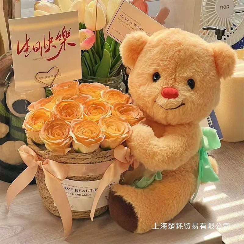 プリザーブドフラワー、梅の実ソース、花束、人形の花束、クマの抱き桶、子供の日の親友への誕生日プレゼント
