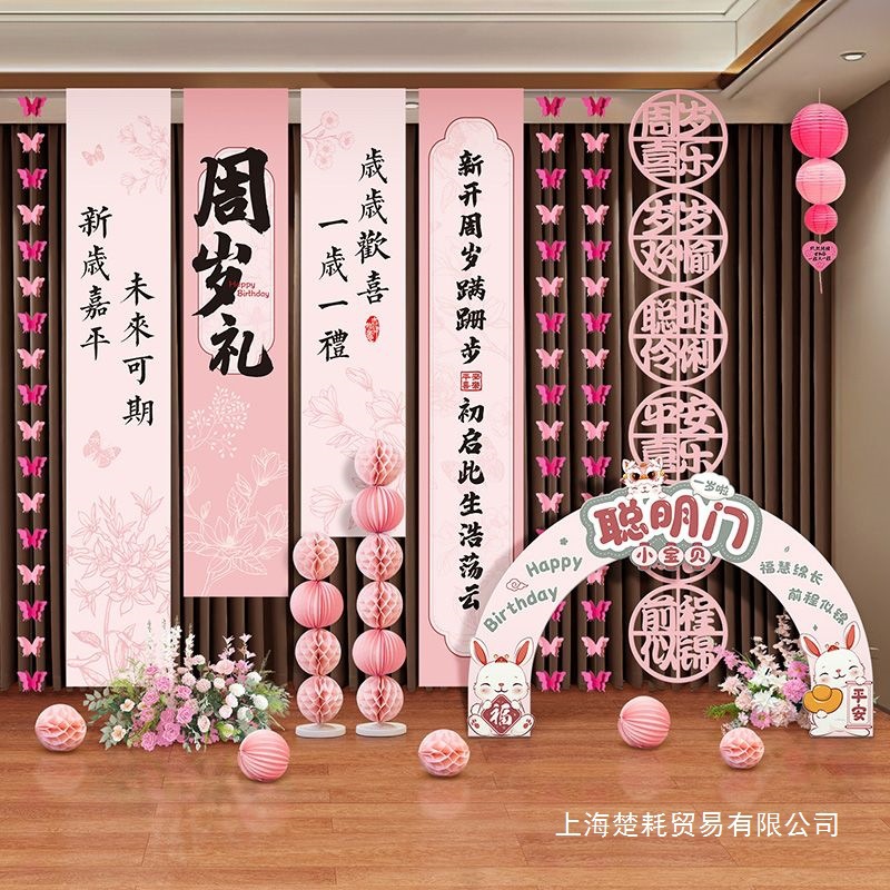 赤ちゃんの1歳の誕生日シーンの装飾背景男の子と女の子の誕生日小道具バナー吊り布