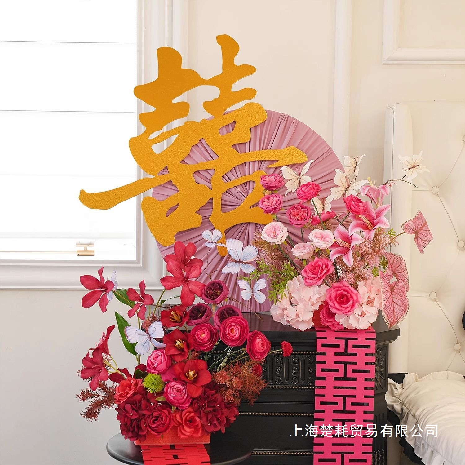 結婚式の部屋の装飾結婚式ピンクの花リビングルームベッドルームベッドサイドハッピーワード装飾品ウェディング用品装飾セット