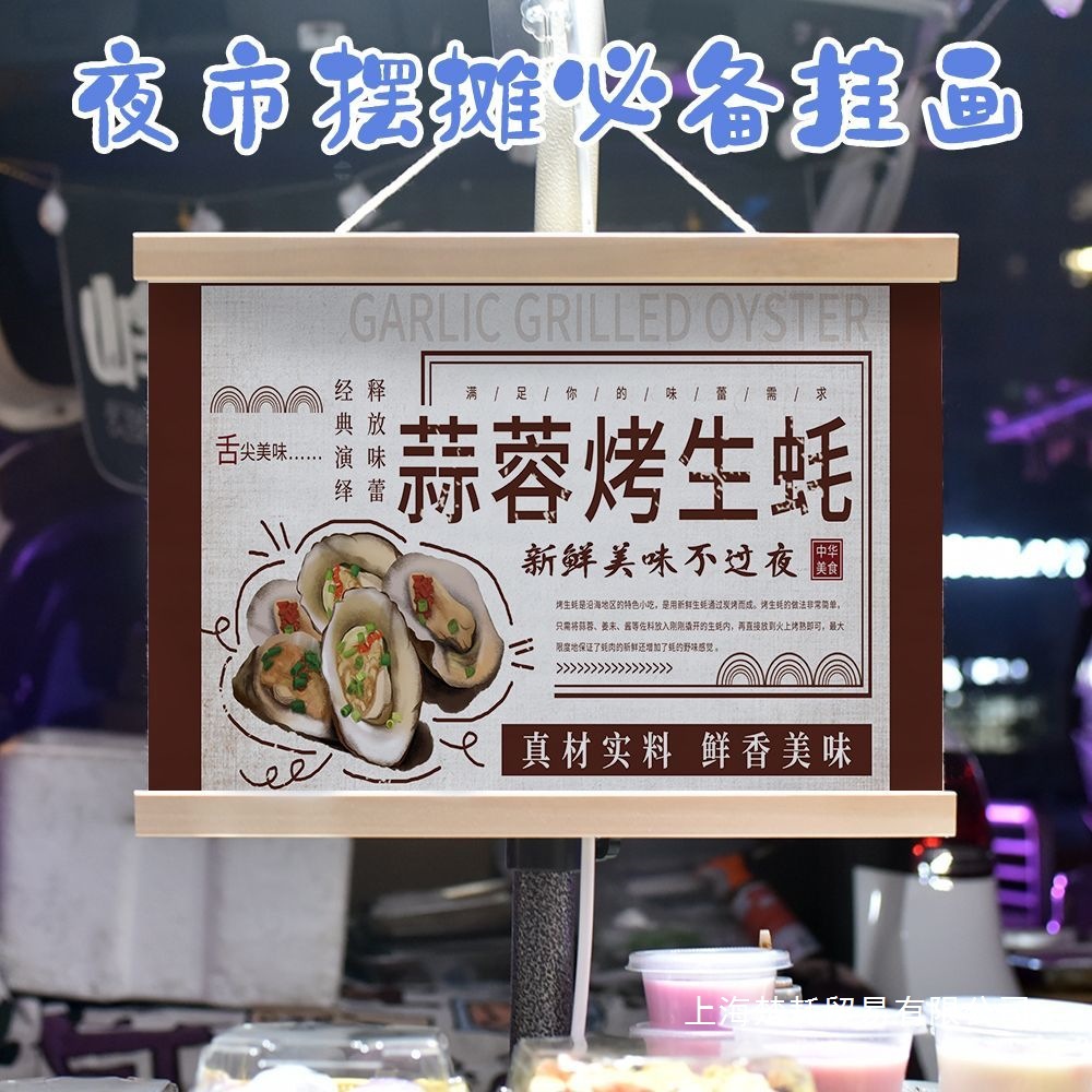 炭火焼きガーリックオイスターダンスホール広告布イン屋外吊り絵画ナイトマーケットの屋台の背景布屋台テーブルクロス綿