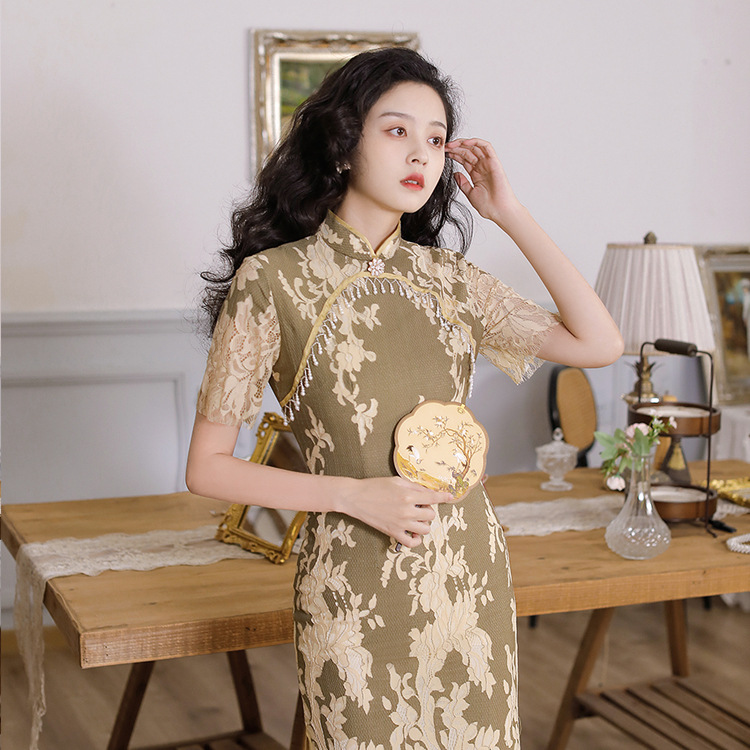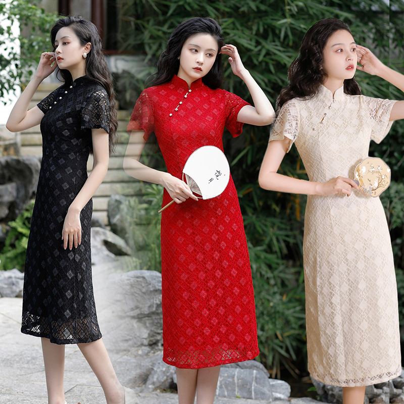 代発2023夏秋の新型ファッションレースのチャイナドレスの中長二重改良修身日常宴会国風卸売り