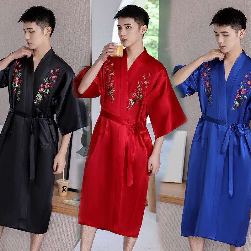 2023春の新型男性パジャマバスローブ中国風サテンゆるい快適ホテル浴場メーカー卸売り