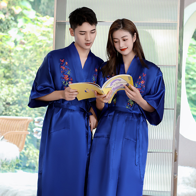 2023春の新しいカップル服男女パジャマバスローブ中国風絹織物ゆるい快適ホテル