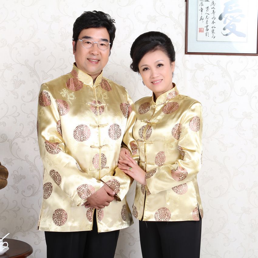 卸売りの中高年の唐装のMJ0001-Bのカップルは寿の披露宴の服の公演服を詰めました。