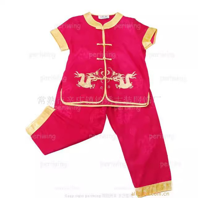 唐装子供服卸売り子供双龍半袖セットx1029を供給する