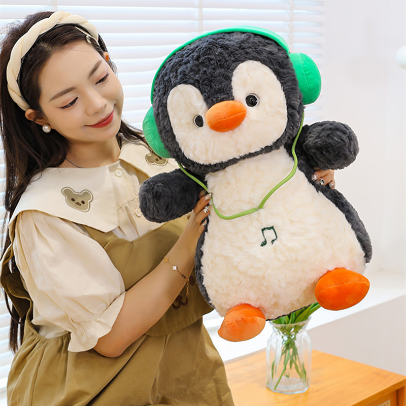 クロスボーダーシミュレーションダイナミックヘッドフォンペンギンぬいぐるみ人形ペンギンベビー人形人形子供の睡眠枕