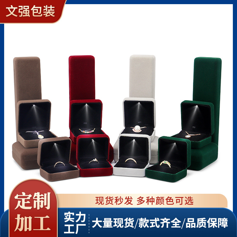 ベルベット鉄箱ledランプアクセサリー箱指輪ブレスレットペンダント長鎖箱ジュエリー包装箱現物
