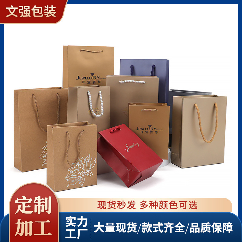 ハンドバッグクラフト紙増粘ボール紙袋ギフト包装袋既製テイクアウト包装袋ロット印刷可能なロゴ