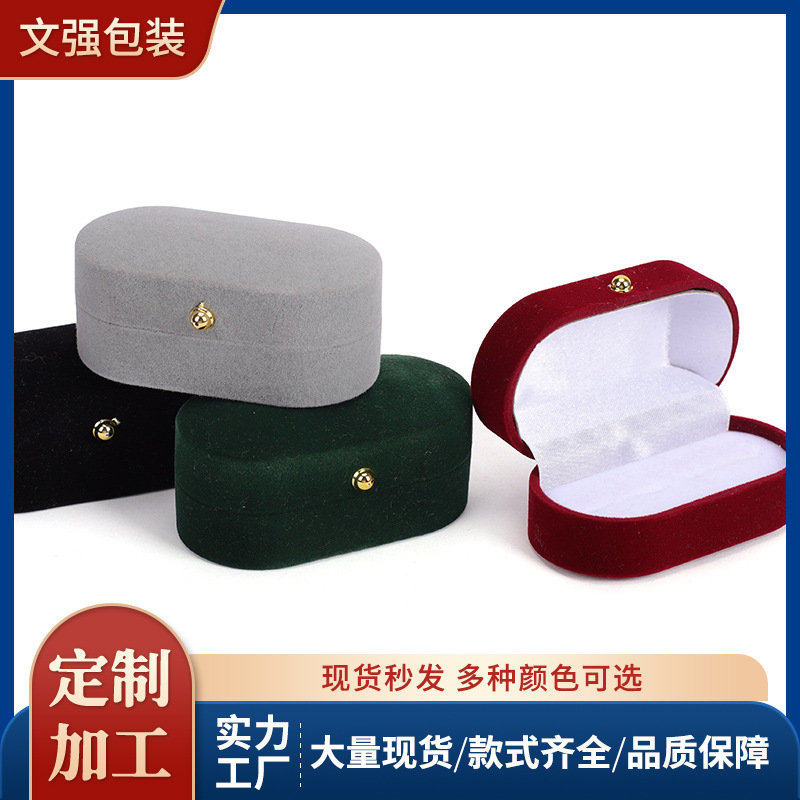 丸いベルベットの指輪箱ジュエリーアクセサリー箱ピアスペアリングアクセサリー箱金ボタン楕円ペアリング箱卸売り