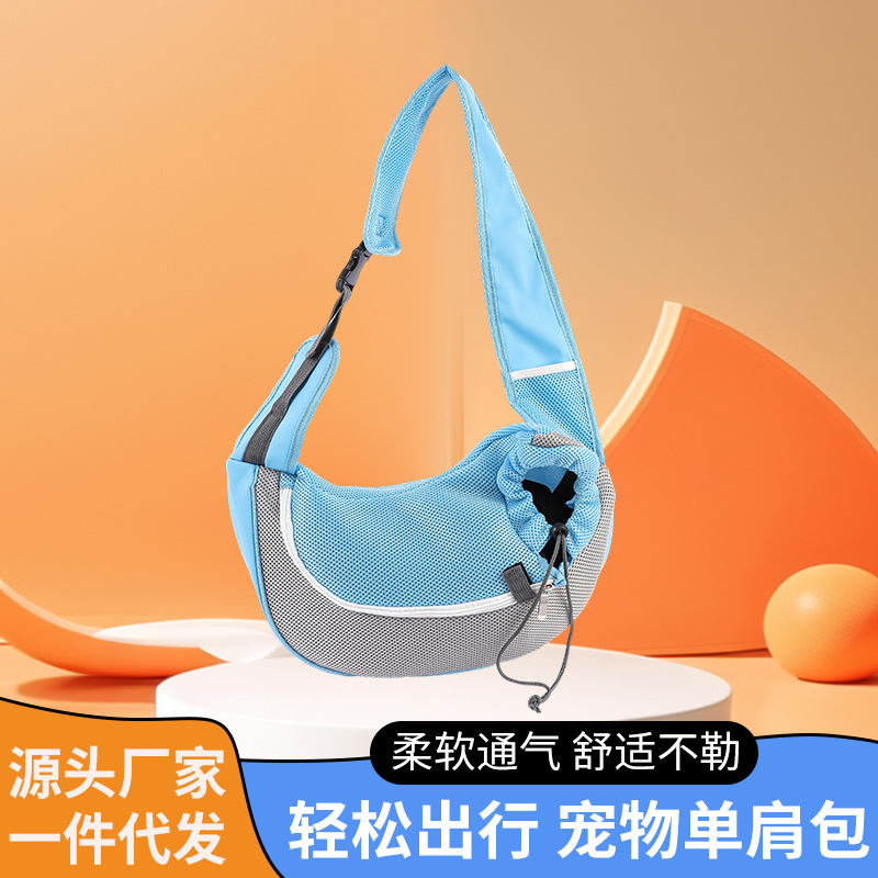 露出ペットクロスボディバッグポータブルメッシュ通気性ペットキャリーバッグ外出用大容量通気性ペットショルダーバッグ