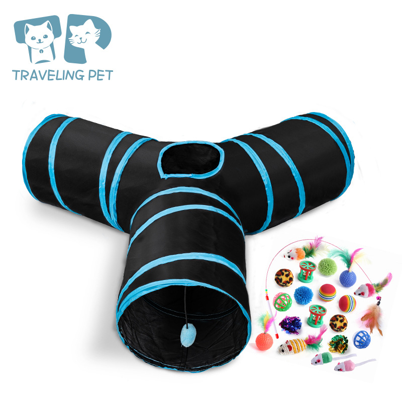 起爆猫トンネル三通ゴロ龍猫ドリル穴折り畳み可能ペット猫玩具自ハイ退屈神器猫通路