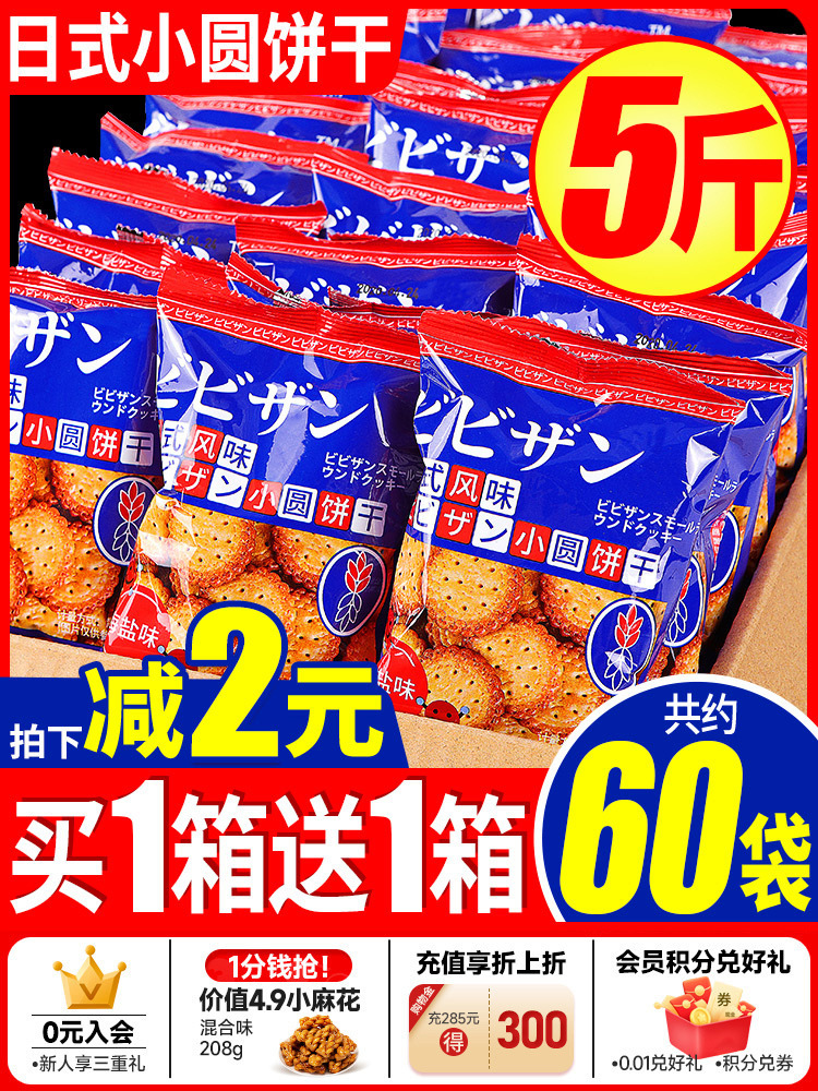 Bibizan インターネットセレブ 和風小丸ビスケット おやつ小丸ビスケット シーソルトスナック スナック食品 箱ごと小袋