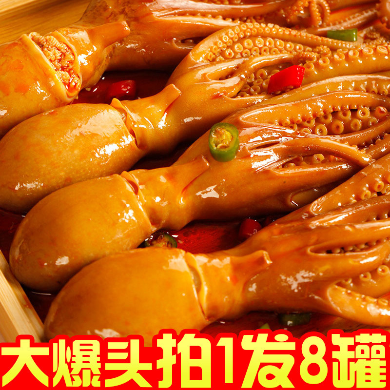 タコの頭が爆発するインスタント人気スナック、タコの触手、スパイシーシーフード、缶詰の調理済み食品