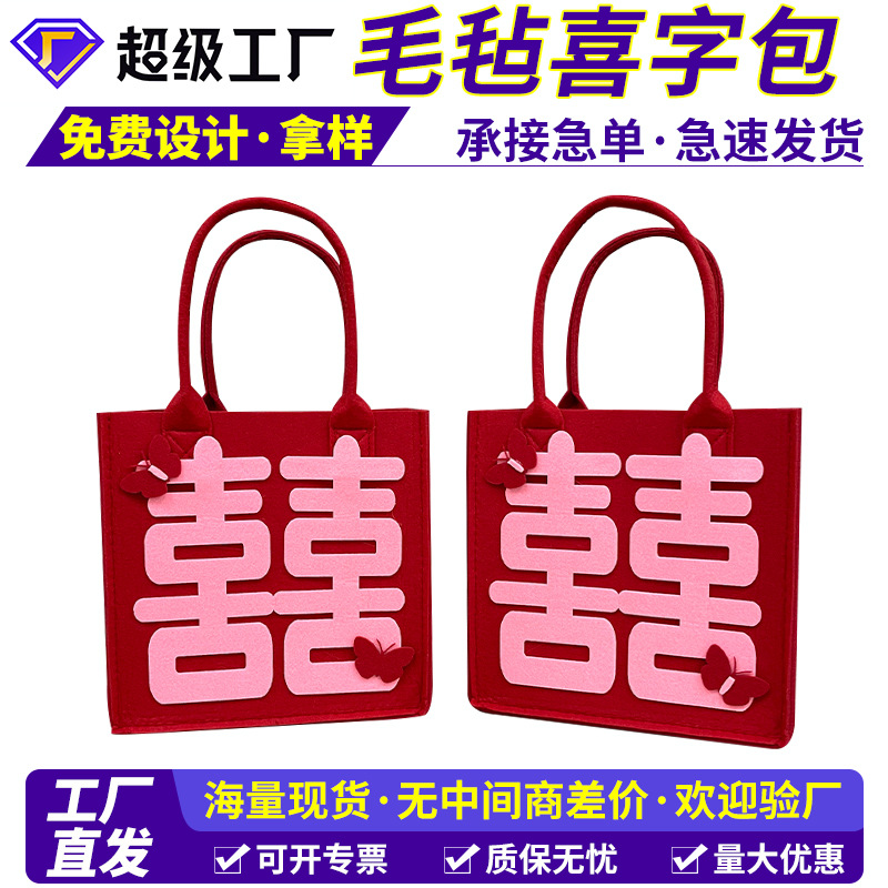 新しい中国式の双喜の字のフェルトのハンドバッグの結婚祝いのお土産の袋の結婚式の装飾の袋の双喜の字のフェルトのハンドバッグ
