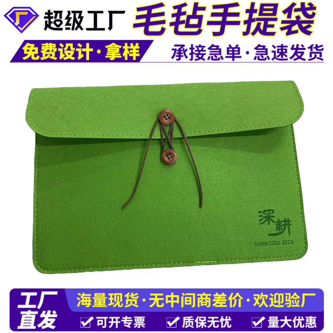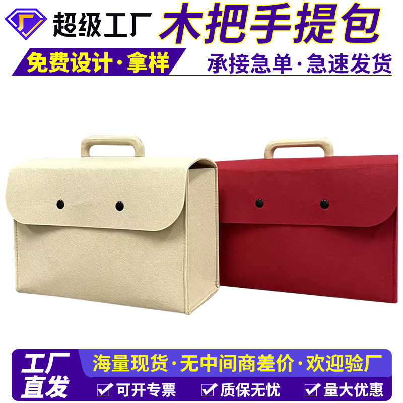2024卸売りビジネス木柄フェルトバッグ厚いフェルトバッグ木柄コンピューターハンドバッグギフトバッグカスタム