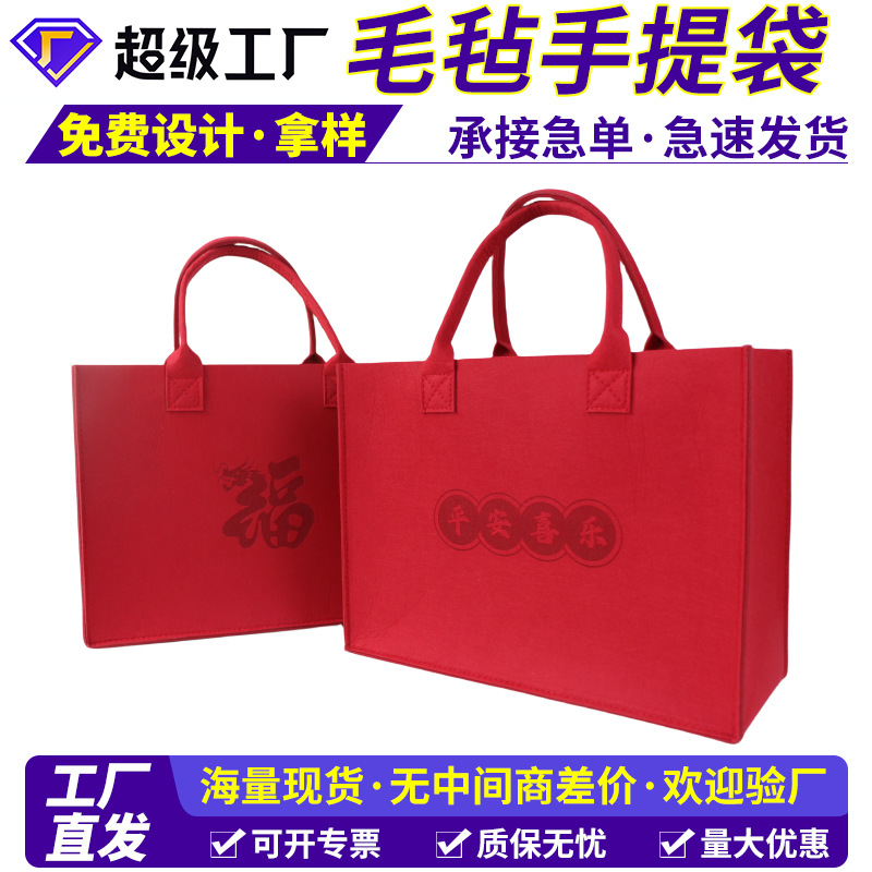 龍年プレゼントフェルト布手提げ袋新年ギフトバッグ赤い福袋大容量エコバッグ印ロゴ