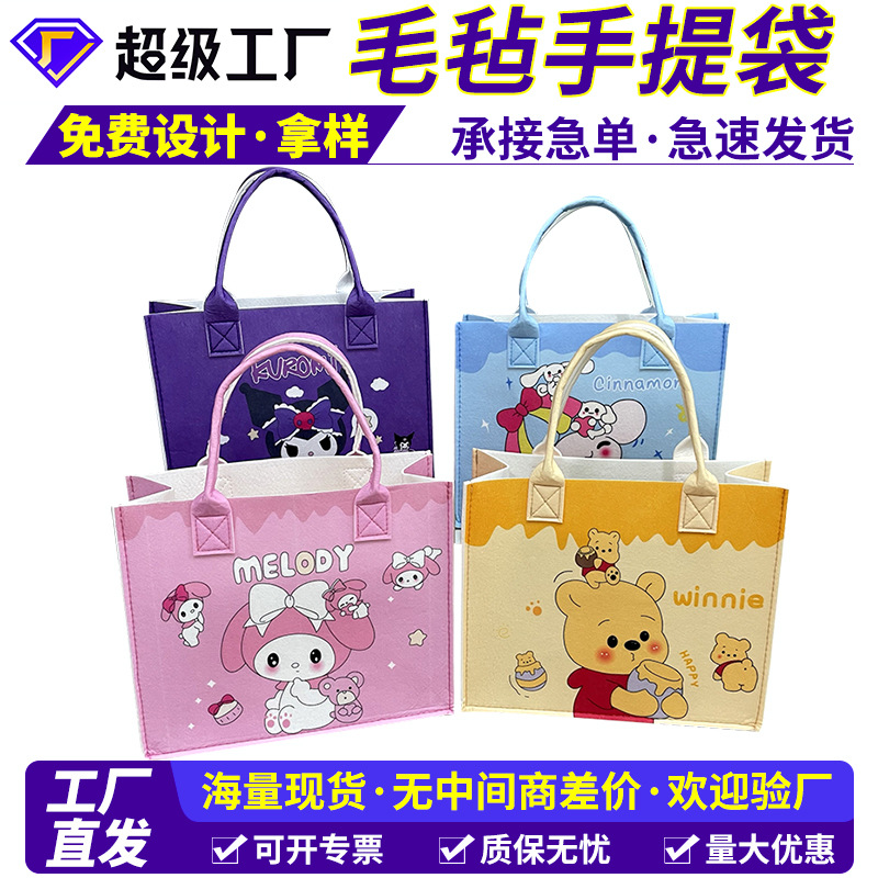 卸売りアニメ学生フェルト手提げ袋大容量レジ袋企業プレゼントフェルト手提げ袋カスタマイズ