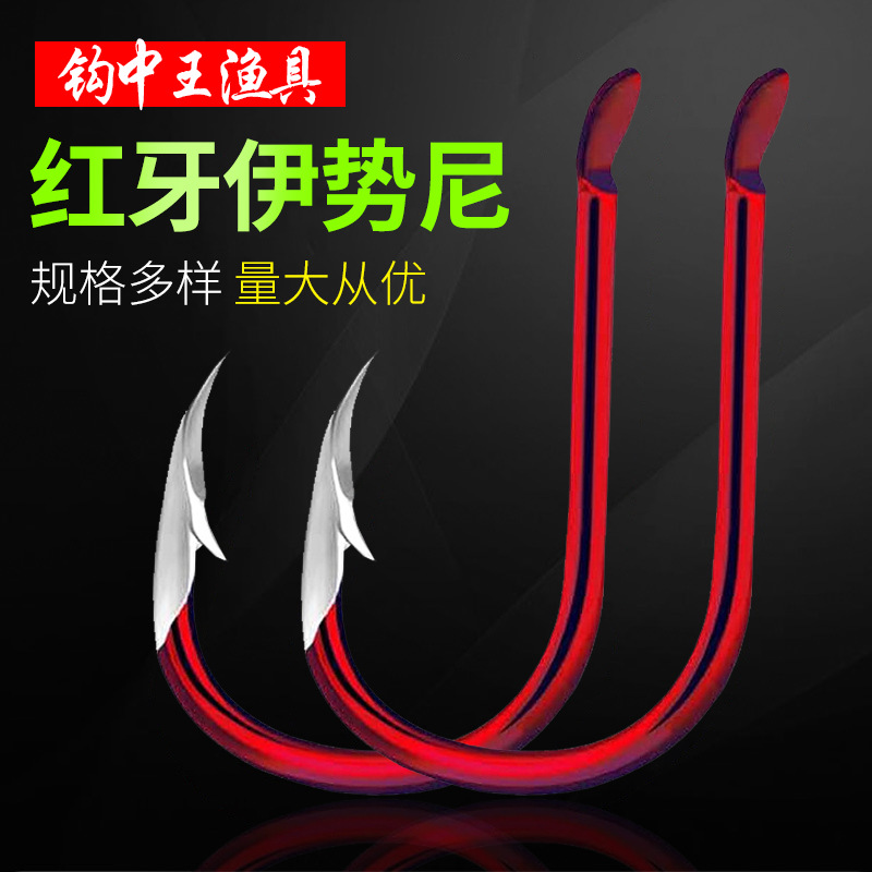 現物は多くのタイプの赤い歯の伊勢尼のピークの三角の歯のフックの高い炭素鋼の鯉の魚の青い魚のフックを提供します。