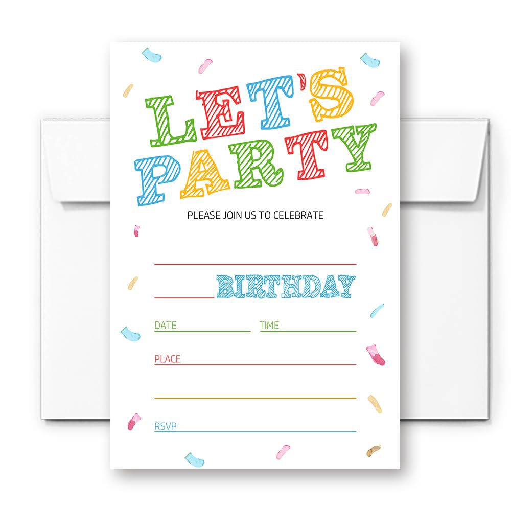カラフルなデザインの招待状、男の子、ティーンエイジャー、子供、女の子の誕生日招待状、誕生日パーティーの招待状