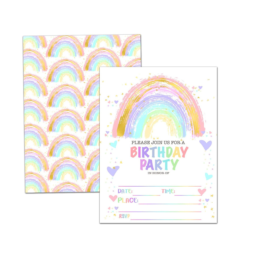 誕生日おめでとうパーティー招待状封筒なし多色紙くず虹テーマカード招待状
